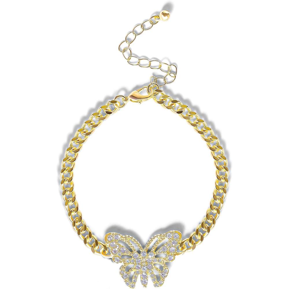 Jessica Simpson Gold-Tone Butterfly Chain Bracelet – Adjustable Pavé Crystal Accent Link Bracelet for Women – Fashion Jewelry
