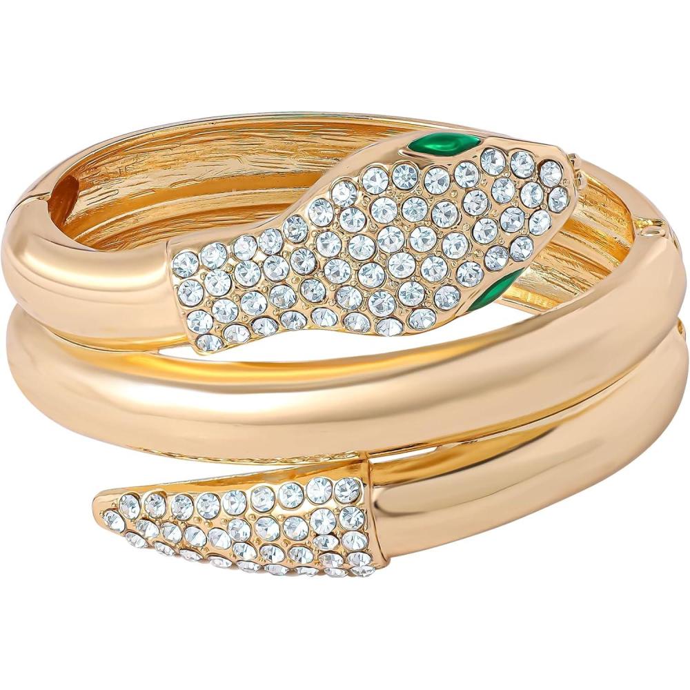 Jessica Simpson Snake Bracelet for Women 7″, Gold-Tone Snake Wrap Bracelet with Green and Clear Crystals