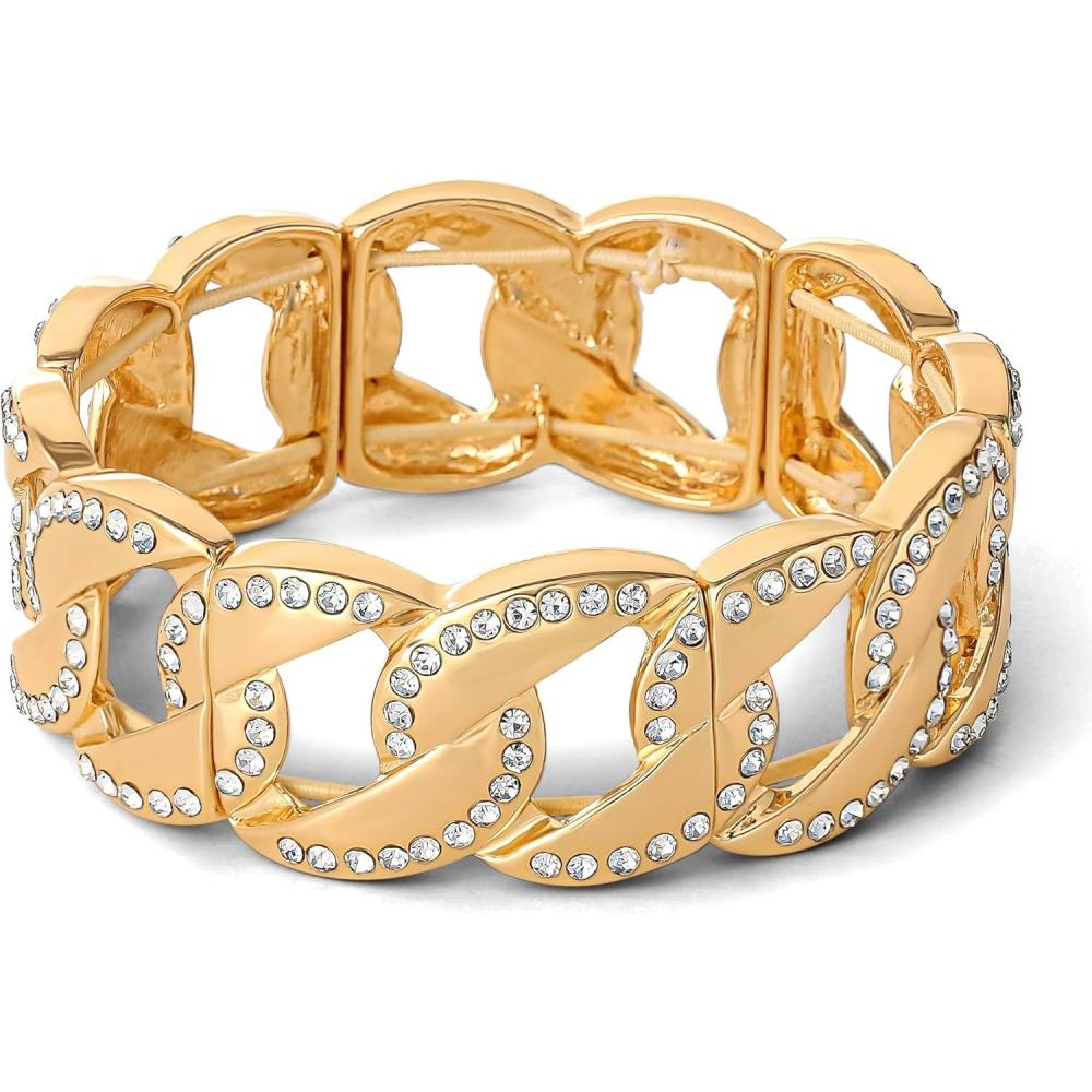 Jessica Simpson Stretch Bracelet for Women – Gold-Tone Statement Bracelet with Rhinestone Embellishments(Gold Links)