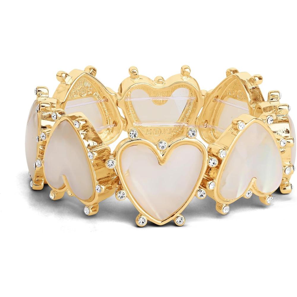 Jessica Simpson Stretch Bracelet for Women – Gold-Tone Statement Bracelet with Rhinestone Embellishments(Heart Gold)
