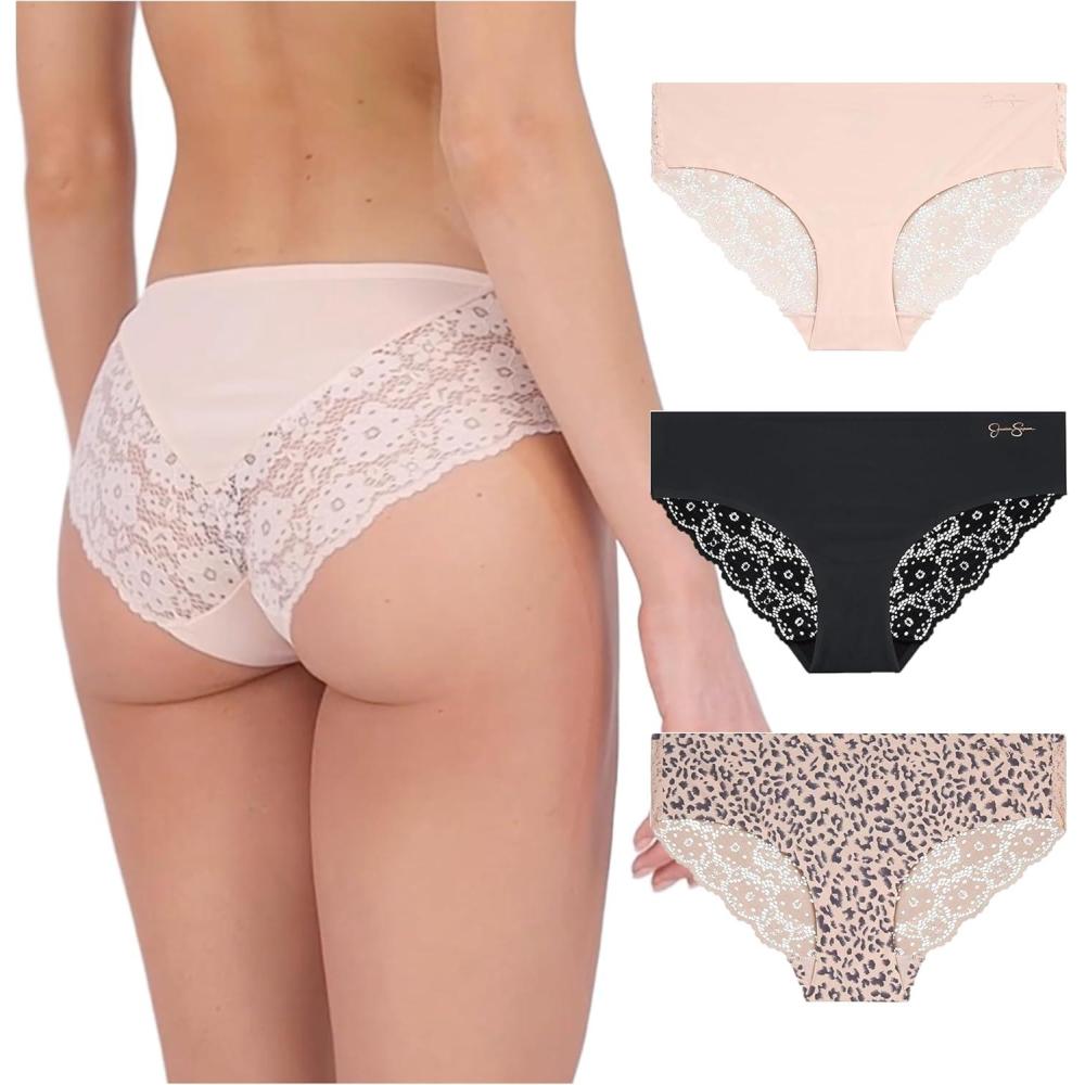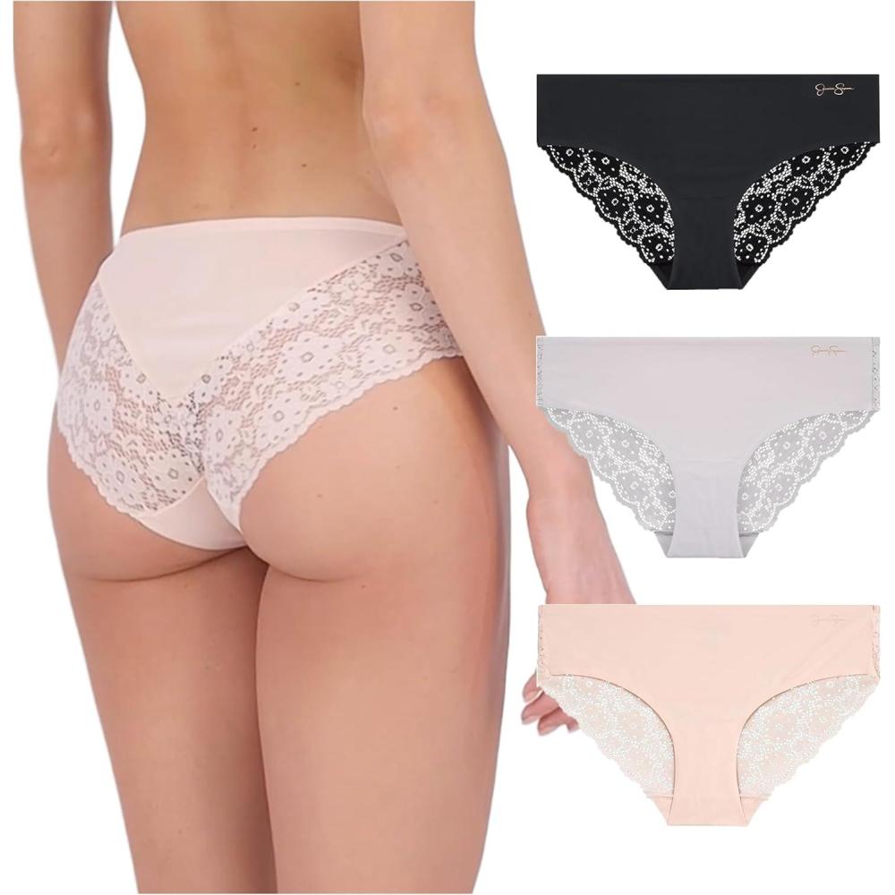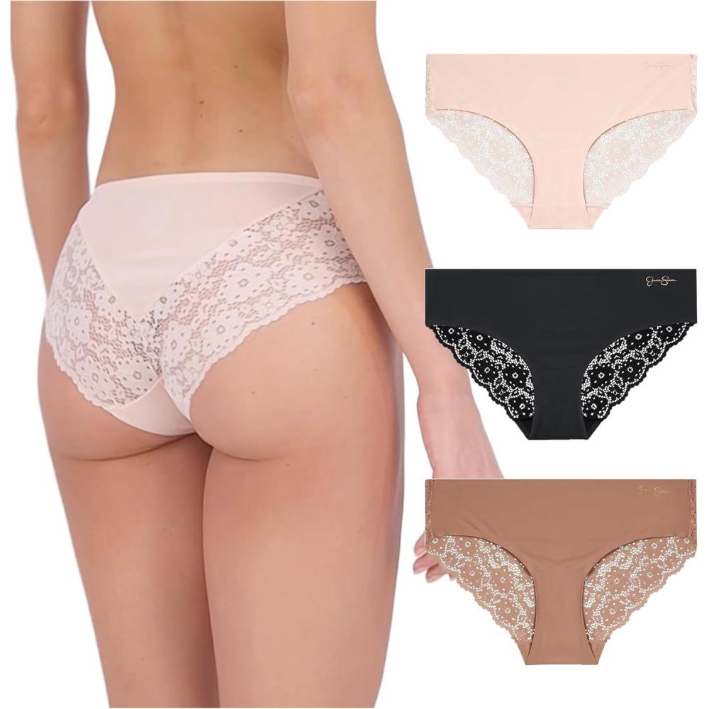 Jessica Simpson Seamless Underwear For Women, Lace Hipster Panties, Cute Breathable and Comfortable Multipack, Ropa Interior(Pearl/Dolce/Black (3 Pack))