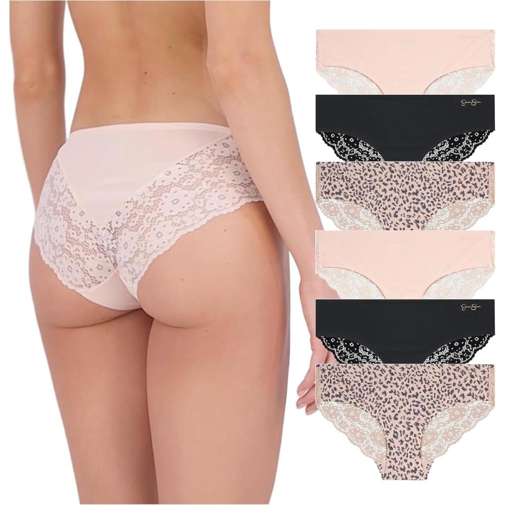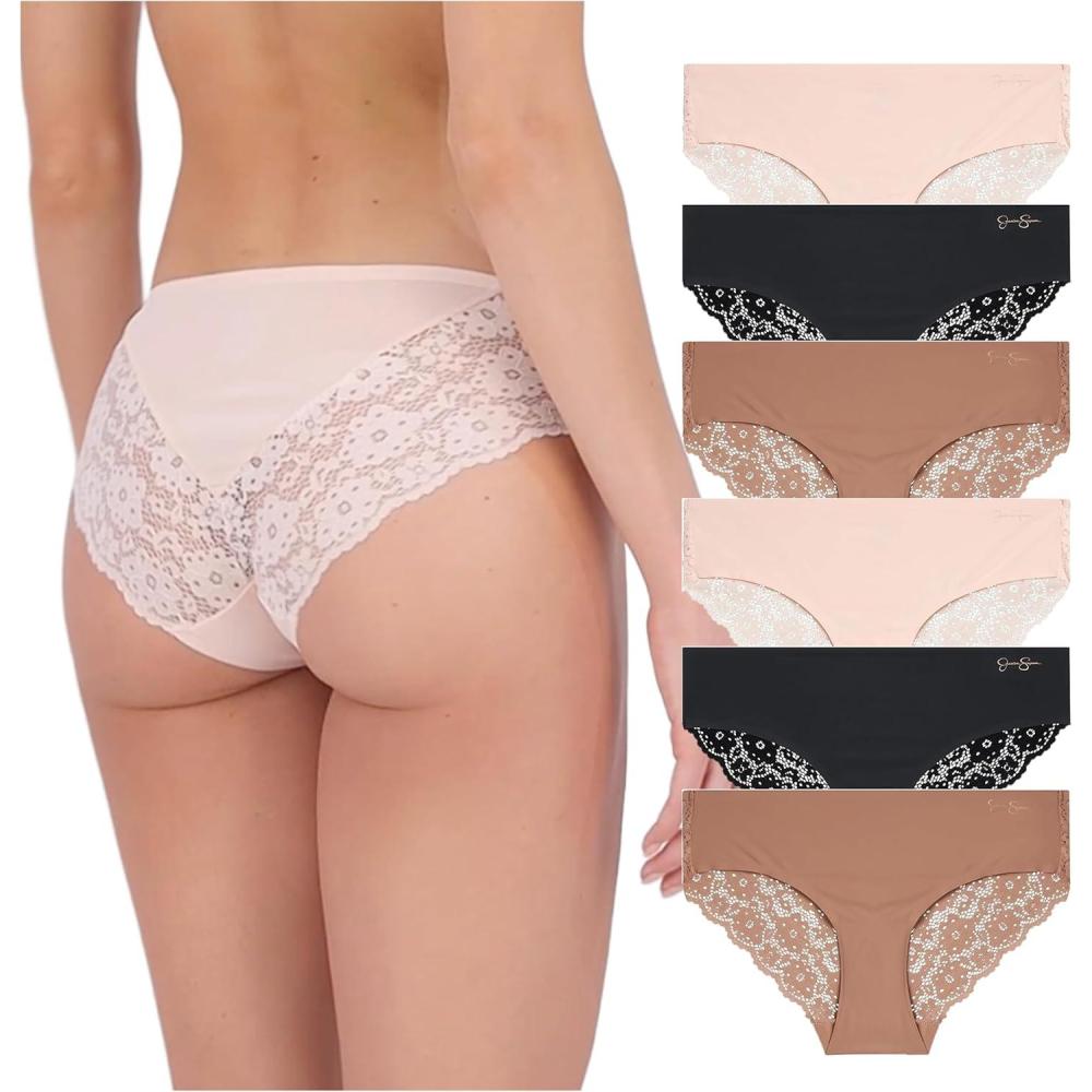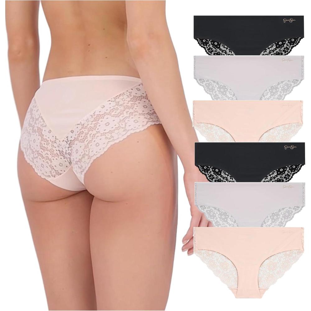 Jessica Simpson Seamless Underwear For Women, Lace Hipster Panties, Cute Breathable and Comfortable Multipack, Ropa Interior(Pearl/Dolce/Black (6 Pack))