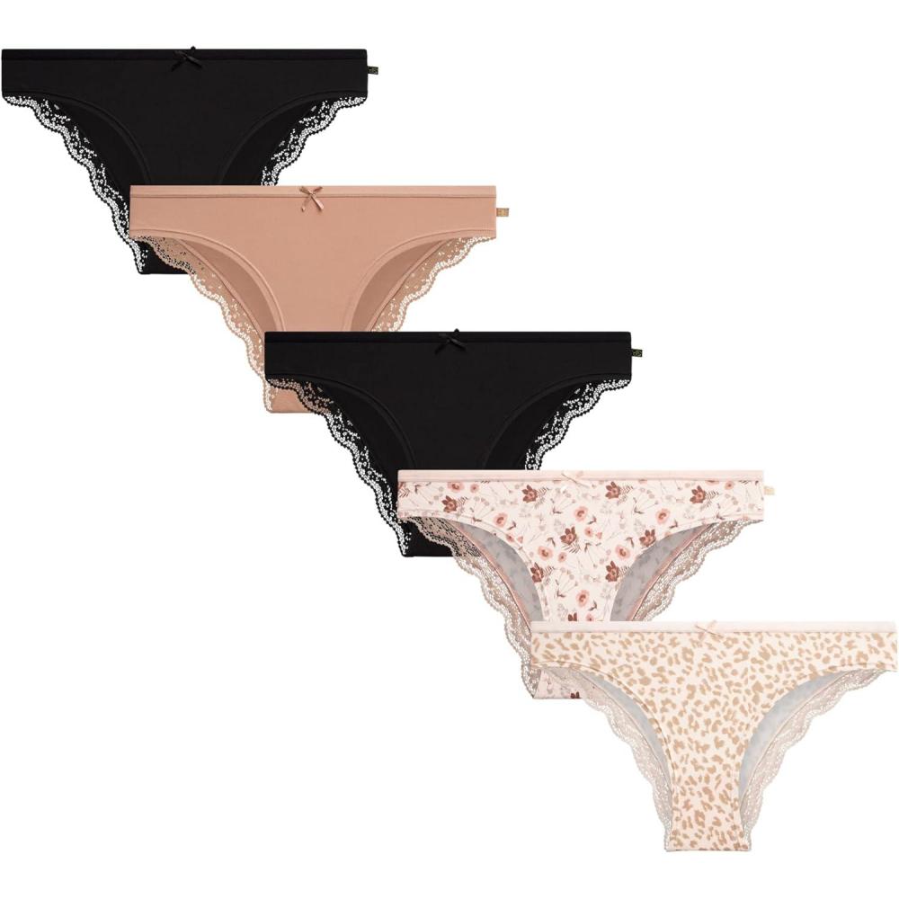 Jessica Simpson Women’s Bikini Underwear – 5 Pack Sexy Lace Trim Seamless Panties Briefs for Women(Black/Black/Textured Animal Pearl Blush/Dolce/Mellow Garden Pearl)